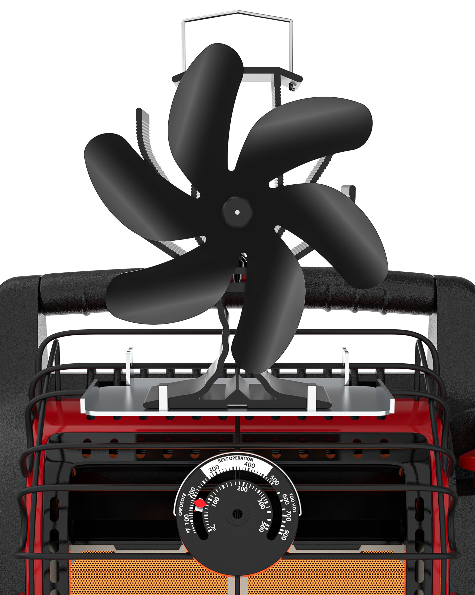 6 Blades Wood Stove Fan with Magnetic Thermometer and Tray