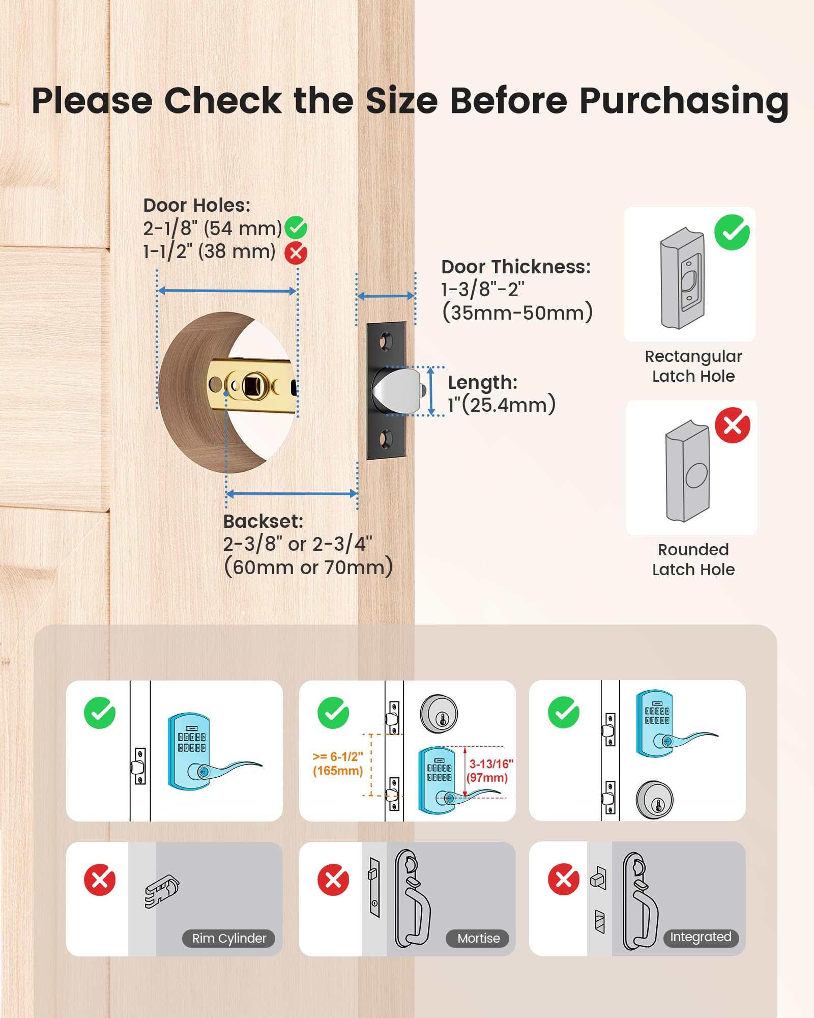 - Custom Auto-Lock Timing: Personalize your electronic door lock with adjustable auto-lock (2-99 seconds). Never worry about forgotten locks again - ideal for families and rentals